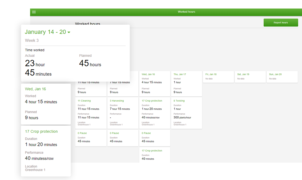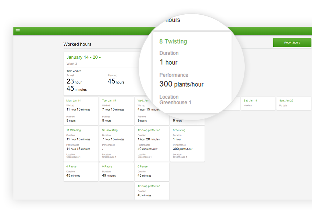 This module is the base for every solution. Smart functions ensure extensive labour and production registration. The data form external sources can be ‘retrieved’, as data form the scale, sorting machine or counter. With Work-IT you have the exact data of your costs, times, production and performance. The data can also be split and compared. This allows you to zoom in to the smallest details of the business.